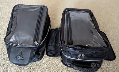Borsa magnetica per serbatoio moto, marca Vanessa. Estendibile e divisibile in 2 borse. Ottima capacità, con finestra trasparente porta cartina/smartphone. Dotato di cinghie per utilizzo come zaino. Colore nero.