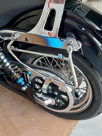 Vendo come da titolo borsa a sgancio rapido MCJ espandibile con chiusura a chiave dotata di doppio anello per aggancio casco e chiusura anteriore per proteggere gli oggettio all'interno della borsa, personalizzata con skull originale HD monta su Dyna 2006/2017 (era montata su Dyna FXDL) nuova costa circa 800€!