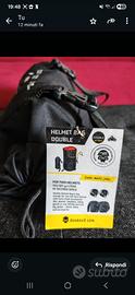 La borsa Double Helmet Bag è abbastanza grande da contenere due caschi integrali e alcuni piccoli accessori come: occhiali, bandana, guanti da equitazione o un casco e una giacca grande, pantaloni e piccoli accessori.Lucchetto grande e robusto con allarme. Le dimensioni e l'aspetto grezzo lo rendono intimidatorio per i potenziali ladri. Il lucchetto ha due modalità di funzionamento, attivabili rimuovendo l'arco e ruotandolo di 180 gradi prima di reinserirlo nella base: modalità di blocco normale o modalità di blocco con allarme.