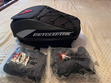 Borsa da Moto da posizionare su sella o portapacchi, molto capiente, puo’ ospitare un casco integrale, nuova con cinghie di fissaggio, tracolla per trasformarla in zaino e cover antipioggia.