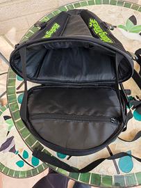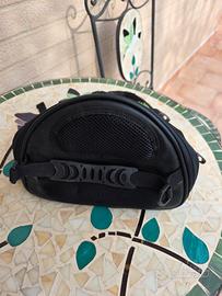 borsa da moto in pelle mai usata capienza circa 3 litri...misure 30×28×21.