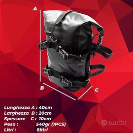 Video tutorial : https://youtu.be/xmhT50bKpGo Borsa Impermeabile Paramotore MOTO 8L modello S8IX che permette il trasporto di qualunque oggetto in qualunque contesto grazie ai materali impiegati che garantiscono impermeabilità in tutte le condizioni. La Borsa laterale impermeabile S8IX non ha paura di temporali ,fiumi e di tutto quello che può compromettere la tenuta al 100% su acqua e agenti atmosferici. Comoda da trasportare grazie alla sua fibbia inclusa in confezione la Borsa Impermeabile da 8L può essere fissata OVUNQUE nella tua moto , puoi anche utilizzarla in aggiunta al sistema bagagli per aumentare il volume , come borsa da serbatoio , borse laterali o borsa paramotore . La borsa inoltre ha una doppia struttura posteriore che conferisce alla stessa una rigidità superiore permettendo di stare sempre dritta e non piegata . Portarla da moto a mano è un'attimo grazie alle cinghie a sgancio rapido , il materiale sarà anche resistente ai raggi uv. Confezione : 1pcs Borsa Impermeabile Paramotore MOTO 8L 1pcs Cinghia per tracolla Specialità : IPX6 Doppia cuciture saldate e la chiusura a rullo permettono la sigillatura interna da acqua e polvere. EASY MONTAGE Ovunque e quando vuoi puoi fissare la borsa grazie alle fibbie a sgancio rapido. INDOSSALA Puoi portarla ovunque grazie la tracolla inclusa in confezione. FATTA PER DURARE Robusta struttura in TPU OXFORD 600D e Hypalon a doppio strato. UTILIZZALA A MODO TUO Molteplici modi di utilizzare la borsa grazie alle cinghie sul retro e ai lati. DIMENSIONI PERFETTE VIAGGIO/GIORNALIERO Non troppo grande per l'utilizzo abituale e non troppo piccolo per i tuoi viaggi! ROBUSTO Grazie alla piastra posteriore rigida che impedisce la deformazione della borsa.