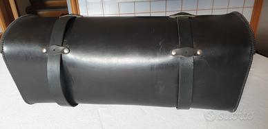 Borsa per moto Honda Goldwing o Harley-Davidson in cuoio nero prodotta da artigiano. Dimensioni larghezza cm. 65 profondità cm. 29 altezza cm. 29.