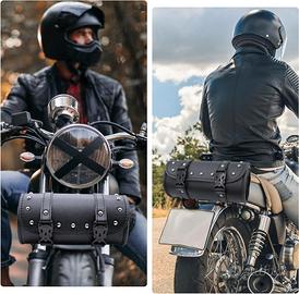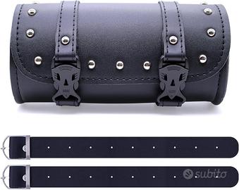 Borsa per motocicletta in finta pelle, con cinghie per appenderla al manubrio o alla sella. Usata in buone condizioni.