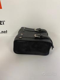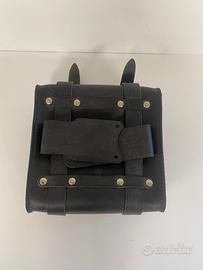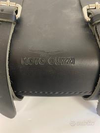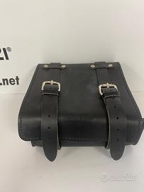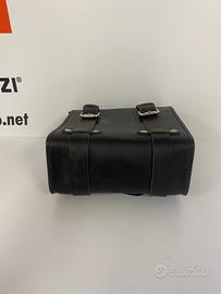 In vendita per Moto Guzzi V7 (vedi modelli compatibili ) Borsa portatutto in cuoio nero finito con una concia vegetale, agganciabile sul portapacchi o sul serbatoio (con l'apposita fascia dello stesso colore venduta separatamente). La borsa è resistente all'acqua e non ha bisogno di cure particolari.