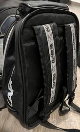 Borsa serbatoio espandibile fino a 40 lt, zaino staccabile completa di anti pioggia, cinghie per il fissaggio e tracolla.