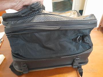 Borsa serbatoio Jollisport estensibile - buone condizioni - poco usata - fissaggio a cinghia - cm.40x30x11h (chiusa) - inoltre copristivali/scarpe in gomma impermeabili Jollisport MAI utilizzati - ancora in confezione originale - tg. L - XL.