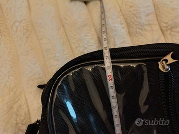 Vendo nuova mai usata. Borsa serbatoio forma ovale per moto, scooter, con calamite. Maniglia, gancio, tasca trasparente, cerniera e tasca interna con velcro. Colore nero. Misura 25x22 centimetri. Compravendita tra privati con formula visto e piaciuto in foto non accetto restituzioni dopo l'acquisto. Scrivere solo se interessati. Consegna presso il mio domicilio. No consegne.