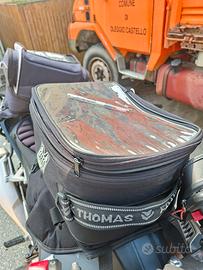 Borsa da serbatoio per moto Frank Thomas. Ideale per trasportare oggetti durante i viaggi. - Materiale resistente. - Ampio spazio interno. - Tasca trasparente superiore. Provvista di magneti molto potenti per ancorarsi al serbatoio