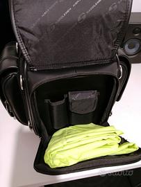 Dotata di maniglia e tracolla per un facile trasporto, la struttura interna regolabile permette di organizzare gli spazi in maniera efficiente. La cerniera principale si apre completamente per facilitare il carico dell'attrezzatura, resistente struttura high-tech in pelle con scomparti in materiale stampato dove poter conservare gli oggetti più fragili come il cellulare o gli occhiali, anelli di montaggio multipli per fissare la borsa nella massima sicurezza.