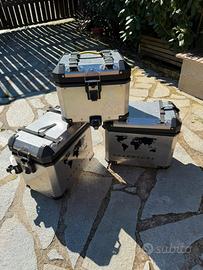 Vendo tris borse originali BMW in alluminio per GS Adventure. Usate solo 2 stagioni, in ottime condizioni, sempre tenute con cura. Complete di adesivi originali e perfettamente funzionanti. Possibilità di vendita separata: •Bauletto posteriore: €350 •Coppia borse laterali: €950 •Tris completo: €1300(leggermente trattabile) Foto reali. Solo interessati, no perditempo.