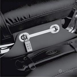 chiusura con cinturino con fibbia e pratica doppia chiusura tuc a pulsante in metallo e chiusura integrata a combinazione a doppia cifra.