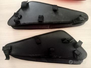 Coppia borse laterali, materiale cordura e impermeabile alla pioggia. erano montate su BMW GS r 1200 ma si adattano a tutte le GS grazie alle varie fibbie di aggangio . colore nero come da foto sono leggermente scolorite dal sole, una e lievemente usurata dalla parte bassa non visibile e non rilevante, le borse tecnicamente sono perfette non entra acqua e non sono bucate .