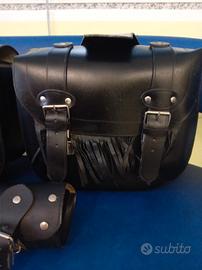 Borse laterali rigide in pelle con frange Borsa manubrio Porta atrezzi Per moto custom Misure borse laterali altezza 30 larghezza 36 Misure borsello larghezza 30 altezza 13
