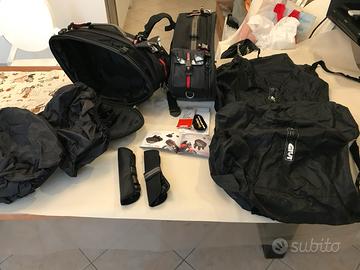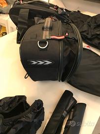 Coppia di borse laterali da moto e scooter Givi linea X-Tream Bag modello T474, colore nero. Queste borse laterali, studiate principalmente per moto turistiche e scooter, hanno una grande capienza (da 26 a 35 litri ognuna), sono dotate di ampie tasche aggiuntive applicate e ben rifinite. Si fissano con facilità su moto e scooter grazie alle cinghie regolabili con velcro ed ai cavi elastici forniti in dotazione. Un soffietto laterale, azionato da una zip, vi permetterà di regolarne il volume.