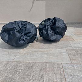 Vendo borse laterali morbide Givi modello EA101B da 40 lt estensibili, usate solo una volta, con cinghie di fissaggio alla sella, copri borse impermeabile, completi di accessori originali.