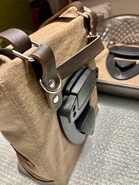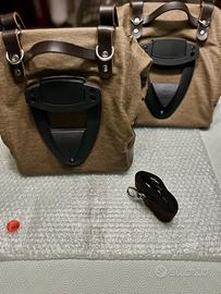 Vendo Borse laterali moto morbide 12 lt “La Poderosa Goods” in tela cerata resistenti all’acqua con attacco aggancio/sgancio rapido KlickFix e relativa chiave per bloccarle.