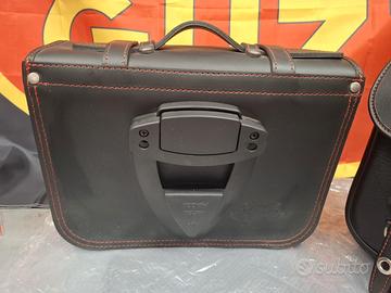 Coppia di borse montabili su qualsiasi modello di moto. Le borse vengono vendute già con gli appositi agganci posteriori che permettono alle stesse di essere fissate sui telaietti appositi in maniera facile e veloce. Dotate di relative chiavi di chiusura consentono una volte montate di non poter essere portate via.