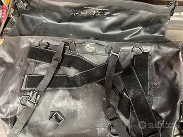 Causa errato acquisto vendo AMPHIBIOUS - MOTOBAG 50LT COPPIA BLACK mai usate , con valvola uscita aria, Realizzata in robustissimo PVC HD++ 1000 D e materiale rinforzato anti calore. classe di impermeabilità 5,classe di galleggiabilità 3,classe di ingombro 3. Tasca interna con zip. Conservate con cura, la patina bianca in foto e’ borotalco.