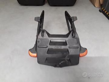 Coppia borse laterali rigide GIVI con chiusura monokey, complete di telaio portaborse universale (per tre borse) con luci di direzione incorporate e adattatori per il montaggio su diverse moto. Consegna a mano a Treviso e dintorni.
