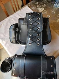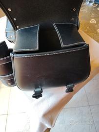 Causa passaggio a scooter, vendo borse laterali in similpelle nuove, mai montate, con 2 porta bottiglia/borraccia. Dimensioni interne 25x14x16 cm. Nuove ma senza cartellino.