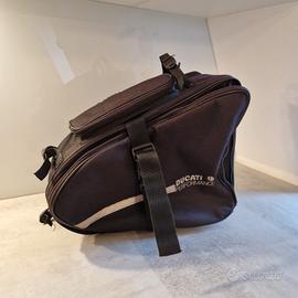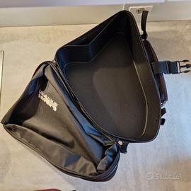 Vorrei vendere due borse da sella. Quella destra è in buone condizioni, mentre quella sinistra è danneggiata. Sono incluse anche due coperture antipioggia in ottimo stato.