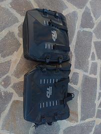 Vendo borse morbide Shad 40 TR con aggancio su 3 punti per royal henfield Himalayan 450 , borse da 40L ognuna con chiave per apertura e smontaggio dai telai. Inoltre i telai senza borse essendo fatti a L e non quadrati, non incidono sull'estetica della moto. Vendo per cambio moto.