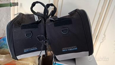 Borse Universali che si adattano a qualsiasi moto. Le usavo sulla Fazer 600 ed erano perfette senza telaietto. Ritiro a mano scambio, con borsetta da serbatoio o da agganciare lateralmente..