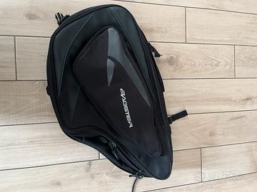Borsa serbatoio cargo endurance con calamite espandibile a circa 30/35 litri e due borse laterali morbide bagster anch’esse espandibili a circa 30/35 litri, acquistate nel 2008.