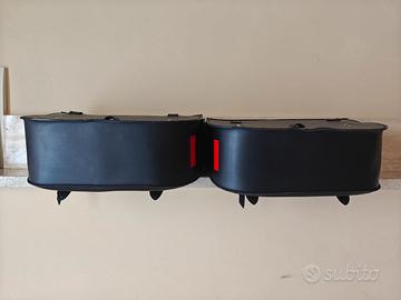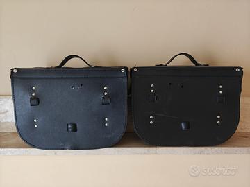Coppia di borse rigide, con un rinforzo in poliuretano. Molto ben rifinite: ricamo lungo tutta l'apertura della borsa, cinghie esterne con dettaglio in metallo per una maggiore sicurezza, due velcri interni molto resistenti per assicurare un'ottima chiusura della borsa.