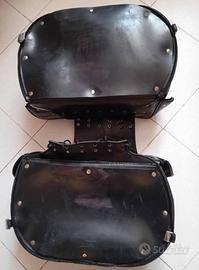 Borse in pelle nera con borchie anni 70' della GIVI, molto capienti con segni di usura in particolare una, ma in buone condizioni di utilizzo