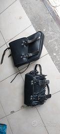 borse valige da forcellone o telaio. l'ideale per custom o caffè racer, usate pochissimo e ferme in garage. Vendo al miglior offerente, noi non le usiamo più, non regalo ma cedo comunque a buon prezzo. erano montate su una harley davidson sottile ma montabili anche su sportster o dyna