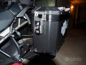 vendo borse moto laterali MyTech con grafiche wrappate (possono essere tolte) comprensivo di telaietto per Harley Davidson Panamerica 1250