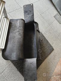 Coppia borse roll Wild dog in cuoio nero, una grande e una piccola. quella grande può contenere un sacco a pelo quella piccola gli attrezzi per la moto.