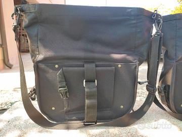 Vendo coppia di borse laterali originali Royal Enfield con tracolla con la possibilità di montarle sulla moto con le apposite staffe di fissaggio incluse.