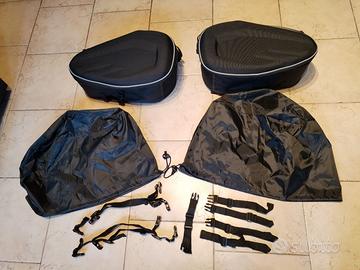 Coppia di borse NUOVE mai usate per moto complete di protezioni anti pioggia e lacci per il fissaggio alla moto. Hanno anche la cerniera per un ulteriore espansione della capienza. Il prodotto è visionabile anche su AMAZON ricercando "borse semirigide per moto"