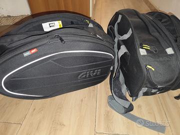 borse semirigide GIVI usate tre volte, complete di cinghie e copertura per acqua espandibili da 30 a 40 l