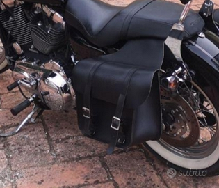 In perfetto stato, coppia borse laterali originali in pelle Harley Davidson tipo throw over per Sportster.