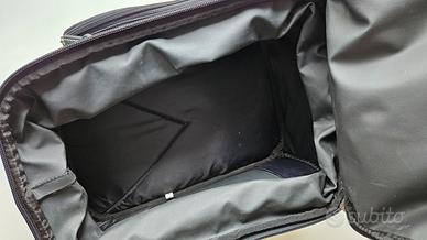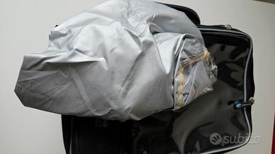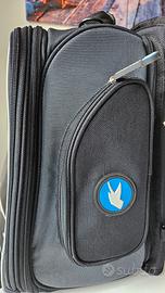 Dimensioni cm 38 x 30 x 25. Condizioni pari al nuovo. Dotata di calamite e lacci per legare la borsa al serbatoio della moto. Dotata di sacco antipioggia e comodo vano anteriore trasparente portadocumenti. Ampio alloggio per riporre il necessario per una vacanza di qualche gg.