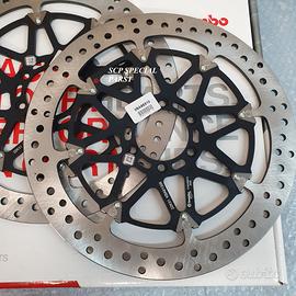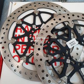La conformazione dell'accoppiamento fascia-campana (senza nottolini) dei dischi Brembo T-DRIVE consente la trasmissione della coppia frenante in modo più efficace e migliora la resistenza agli stress termomeccanici. Il sistema T-DRIVE permette la flottanza sia radiale sia assiale e consente di ridurre il peso complessivo del disco, portando un consistente vantaggio nella guidabilità. La fascia frenante, dello stesso acciaio dei dischi impiegati in MotoGP e in SBK, È stata ottimizzata sia riducendone l'altezza (più leggerezza e maneggevolezza) sia ridistribuendo la disposizione dei fori (di diametro differenziato). Anche la campana contribuisce in maniera sostanziale al risultato finale: realizzata in lega leggera tramite lavorazioni CNC, ed è stata progettata per garantire leggerezza e rigidità.