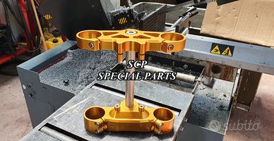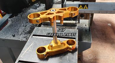 Realizzate con Off set standard oppure speciale o regolabile a richiesta. Replichiamo tutti gli attacchi e supporti originali per telaietto, quadro strumenti, blocco accensione, blocca sterzo, ammortizzatore di sterzo etc. oppure ne produciamo su richiesta.