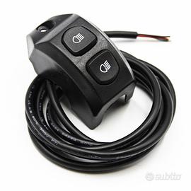 GUARDA IL VIDEO MONTAGGIO DELLA CENTRALINA SBW2 : youtu.be/zJr5EKWVkYg Grazie a questa combinazione del Pulsante moto stile bmw avrete la possibilità di ottenere un tasto di accensione a 2 pulsanti indipendenti che vi permetterà di comandare due apparecchi differenti . Infatti questo pulsante sarà inviato insieme ad un Smart relè che vi permetterà di utilizzare due apparecchi (in questo caso faretti supplementari ma in realtà può essere collegato qualunque altro accessorio a 12-24v) che potranno essere attivati indipendentemente l'uno con l'altro. Oltre a questa funzionalità molto comoda questo Smart Relè vi permette anche di disattivare in maniera automatica i faretti una volta arrestata e parcheggiata la moto , non dovrete più preoccuparvi di dimenticare il dispositivo o faretti accesi . Il desisgn è stato studiato per essere coerente alla pulsantiera originale ed essere fissato in modo sicuro ed omogeneo . Il Seguente pulsante moto stile bmw inoltre ha una resistenza ad acqua e polvere per garantire protezione ad intemperie e funzionalità a lungo termine , sconsigliamo comunque il diretto contatto con l'acqua in fase di lavaggio per preservare la funzionalità. Il pulsante ha i seguenti pin di collegamento : Cavo Nero : Negativo Cavo Rosso : Positivo Cavo Verde : Collegamento dispositivo Cavo Giallo : Collegamento dispositivo Collegamento Smart Relè : Cavo Rosso : Positivo batteria Cavo Negativo : Negativo batteria Dispositivo 1 : Cavo Giallo : Positivo Cavo Verde : Negativo Dispositivo 2 : Cavo Giallo : Positivo Cavo Verde : Negativo Cavo Verde-Giallo-Rosso-Nero : Collegamento pulsante Dettagli : Materiale : ABS Tensione funzionamento : 12-24V Fusibile : 20A Voltaggio massimo di funzionamento : 120w Per dispositivo (240w total) Prodotto compatibile universalmente