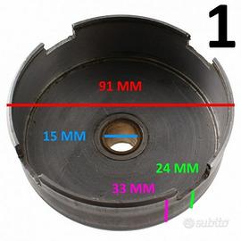 (R.1041) Vendo campana frizione nuova per Malanca Z seconda serie marca Surflex con diametro esterno campana 91 mm versione per piattello spingidisco a 4 tacche , il prezzo si intende per singolo pezzo , per misure vedere foto , disponibili più modelli :