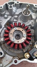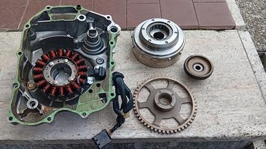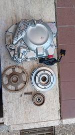 disponibile per Honda SH 300 e SH 150 , carter completo di campioni magnetici nuovi originali con volano magnetico corona ruota libera, pignone e alberino e mezza luna zeppa. Tappo scarico filtro.Tappo stecca riempimento.Pompa acqua revisionata. Materiale comprato e montato per un cliente che poi è sparito nel nulla. Ritrovati in una scatola da anni in officina che ho svuotato. Roma est per informazioni contattare tramite whatsapp 3279093968