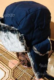Copricapo blu con pellicciotto detto anche cappello da Aviatore, con copriorecchie o da usare anche solo come cappello visto che i copriorecchie possono essere anche tirati su con appositi bottoncini che li vanno a fermare. NUOVO mai indossato, lo tolgo per euro 22,00 !! Consegna a mano solo in zona dove loca l'articolo oppure si può spedire con più euro 7,00 a vostro carico per spedizione con corriere di Poste Italiane.