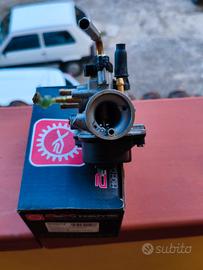 Carburatore 17.5 con servizi di regolazione a sinistra, aria manuale e attacchi per olio e depressore, ideale per cilindri sia originali che sportivi di moto, scooter e ciclomotori. Compatibile con ricambi per Dellorto PHBN - PHVA, economico ma estremamente robusto. Dotato di 2 attacchi per il riscaldamento del carburatore, ma può essere installato anche su veicoli privi di questo sistema (ovvero i due tubi che si collegano sulla testata del cilindro).Compatibile con ricambi per Dellorto PHBN - PHVA, estremamente robusto. SPECIFICHE TECNICHE: • Diametro passaggio: 17,5 mm • Aria: Manuale • Diametro attacco filtro aria: 38 mm • Diametro attacco collettore: 24 mm • Cursore del gas: 16 mm • Getto massimo: 95 • Getto minimo: 34 • Getto starter: 44 • Spillo conico: A12