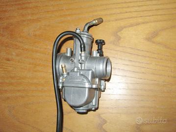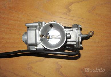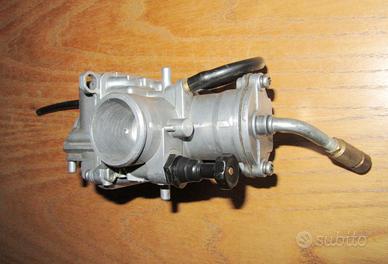 VENDO Carburatore Keihin pwk 28 smontato dalla mia moto da trial 2t, perfettamente funzionante. Monta su quasi tutte le moto da trial 250-300 dal 2005 in poi: Gas gas, Sherco, TRS, Beta Evo…Adattabile anche ad altre: attacco collettore elastico d. 35 mm; attacco cassa filtro d. 49 mm. Ovviamente è originale, made in Japan, non le repliche economiche (alcuni con power jet) che si trovano in giro oggigiorno. Valvola gas cromata con sezione semi ellittica! Rispetto al Dell’Orto offre una carburazione piu precisa, un’erogazione piu progressiva; soffre meno l’umidità ed altitudine; migliora leggermente anche l’allungo. E’ stato modificato per migliorarne ulteriormente la fluidodinamica: lucidatura del condotto lato filtro, irruvidimento dal lato opposto. Eliminazione bave di fusione lato filtro. Stuccatura (con bicomponente epossidico) del condotto cieco presente lato filtro. Possibilità di montare la vite di regolazione del minimo (altezza ghigliottina) sia lato destro (Beta) che sinistro (Gas Gas ecc…). Usato, in condizioni eccellenti. Prezzo da nuovo: 260 euro. Monta: getto massimo 122, min 42, spillo JJH in tacca intermedia (la terza dal basso).