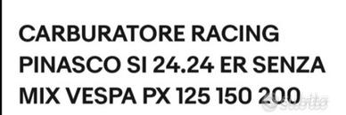 salve, vendo carburatore nuovo mai usato con scatola per vespa 150 super, per altre info chiamatemi allo 333 897 8047