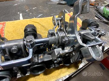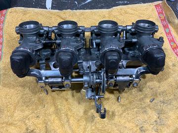 Lavati con 2 cicli ad ultrasuoni lucidati a nuovo in ogni singolo dettaglio. sostituite le cuffie para polvere delle alzate e tutte le tenute in gomma, oring guarnizioni vaschette. Sono pronti da montare anche se andranno regolati e carburati in funzione della moto sulla quale verranno montati e delle sue condizioni meccaniche ed elettriche. Chi è competente conosce il costo delle parti di ricambio.Tutte le parti interne, getti polverizzatori spilli sono originali HONDA e non kit di dubbia provenienza o altro.