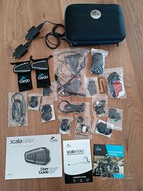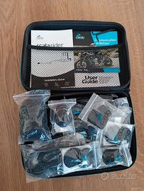 Interfono moto Cardo Q1/Q1 TeamSet per guidatore e passeggero. Molti accessori mai utilizzati. Comoda valigetta.